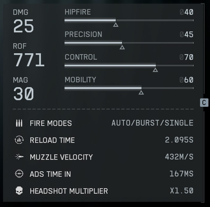 | Steuerung | Wie stabil sich die Waffe beim Feuern verhält. Ein hoher Wert verursacht weniger Rückstoß. |